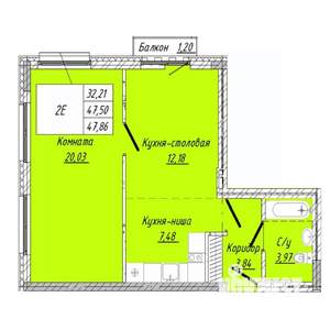 Комната в 2-к квартире, на длительный срок, 52м², 4/5 этаж